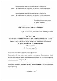 (Тернопіль, 2025)Дисертація присвячена з’ясуванню морфологічних та функціональних змін структурних компонентів легень за умов змодельованої диметилгідразин дигідрохлорид-індукованої (ДМГ-індукованою) аденокарциноми товстої кишки in situ. ... -